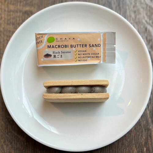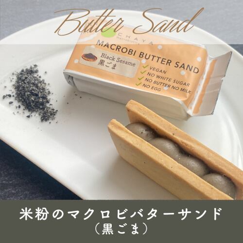 黒ごま特有のコクと甘みも特徴のヴィーガン仕様のバターサンド。グルテンフリー。