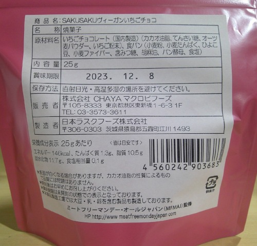 ○原材料:いちごチョコレート(国内製造)(カカオ油脂、てんさい糖、オーツ麦パウダー、いちご粉末)、食パン(小麦粉、小麦たんぱく、ひよこ豆、小麦ファイバー、含みつ糖、胡麻油、パン酵母、食塩)