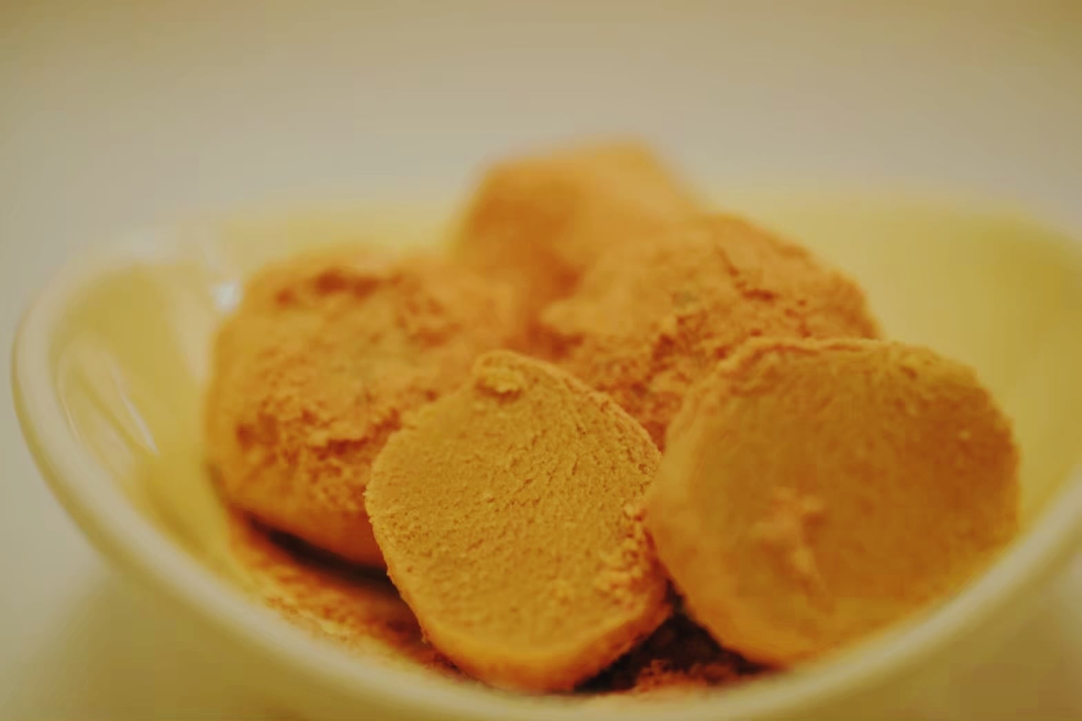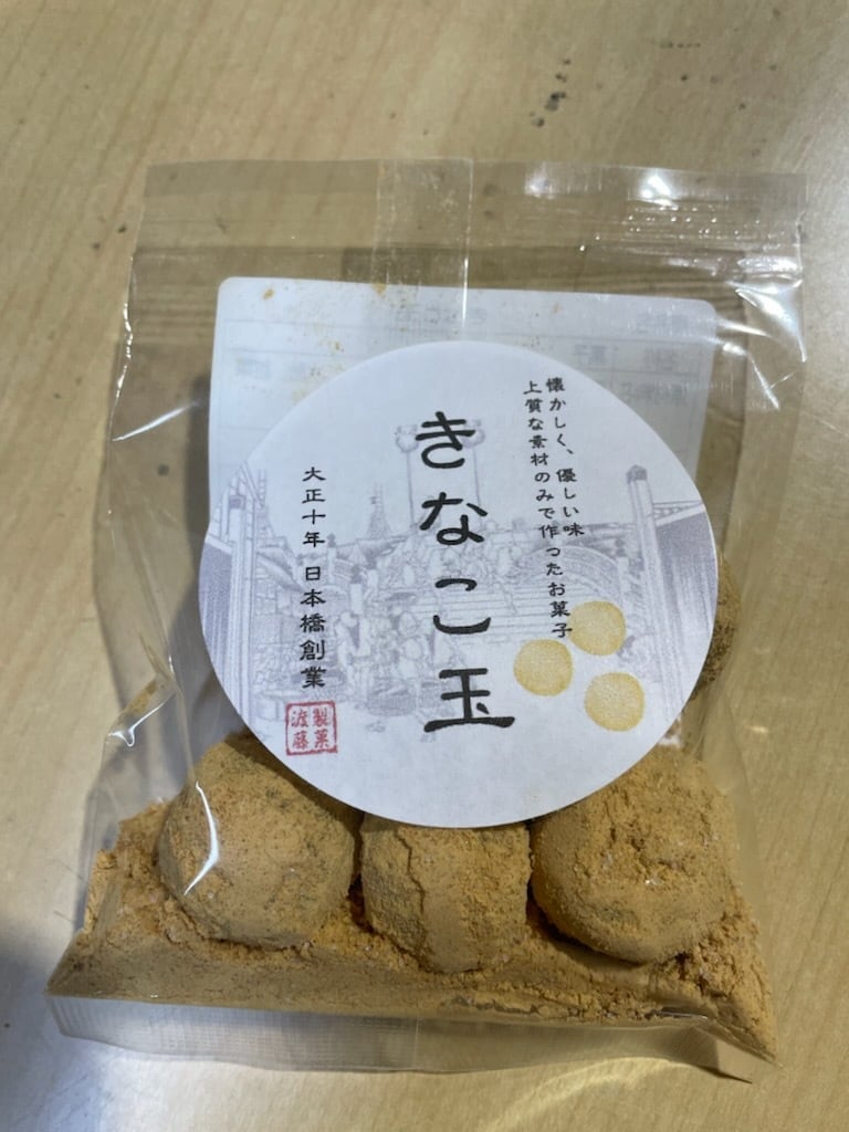 大正10年創業ワタトーによる伝統菓子。昔ながらのきなこ棒を丸く仕上げました。