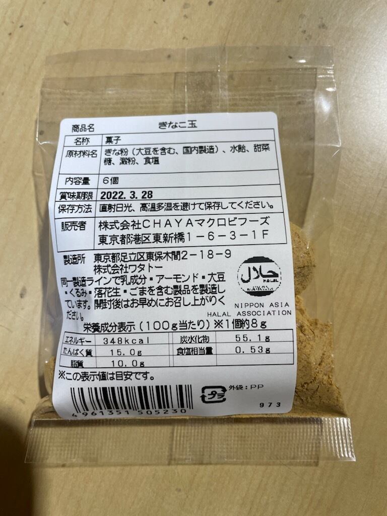 ○原材料:きな粉(大豆を含む、国内製造)、水飴、甜菜糖、澱粉、食塩