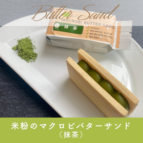 本物の「バター」の味わいを感じさせる濃厚な味わいと、抹茶の甘苦い味わいがクセになる、ヴィーガン仕様のバターサンド。グルテンフリー。