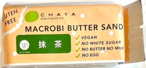 ○原材料:クッキー生地(国内製造)(米粉、オーガニックショートニング、大豆粉、粗糖、食塩)、マクロビバター(メイプルシロップ、カカオバター、ココナッツミルク、オーガニックショートニング、アーモンドペースト、麦芽水飴)、有機抹茶パウダー、(一部に大豆・アーモンドを含む)
